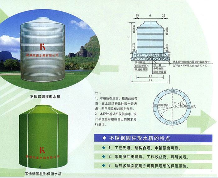 錐形圓柱保溫水箱特點(diǎn):